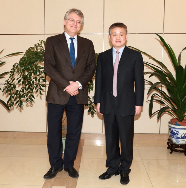 2017年1月23日,中國人民銀行副行長、國家外匯管理局局長潘功勝在北京會見了中國歐盟商會主席伍德克先生一行。雙方就當前中國經濟發展前景、跨境資金流動和外匯管理政策等問題進行了溝通交流。